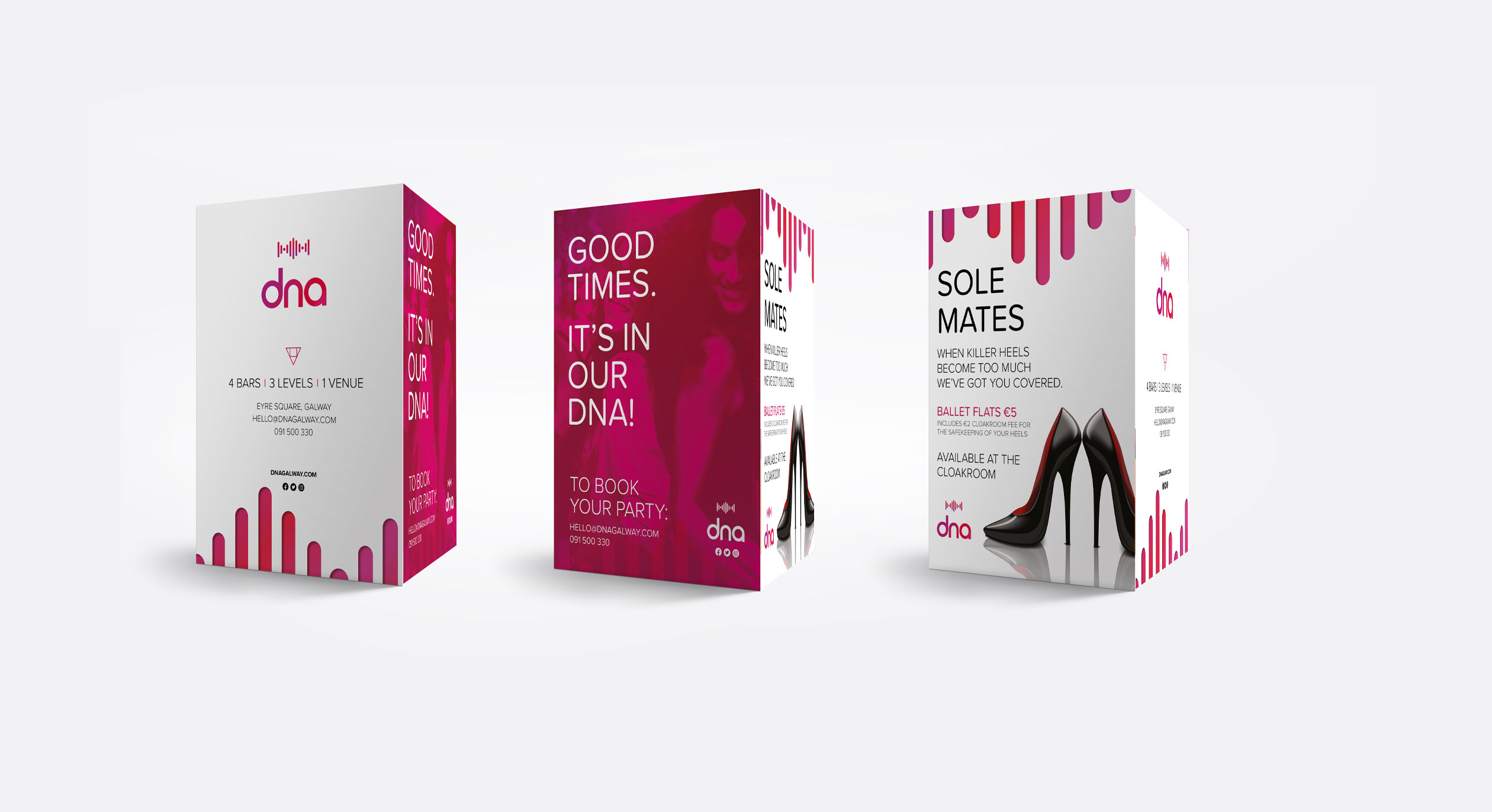 dna is an ambitious entertainment establishment located in the vibrant city of Galway. With a mission to redefine the nightlife scene, the client approached our design agency to create an immersive and visually stunning experience that would captivate patrons and set the venue apart from its competitors.