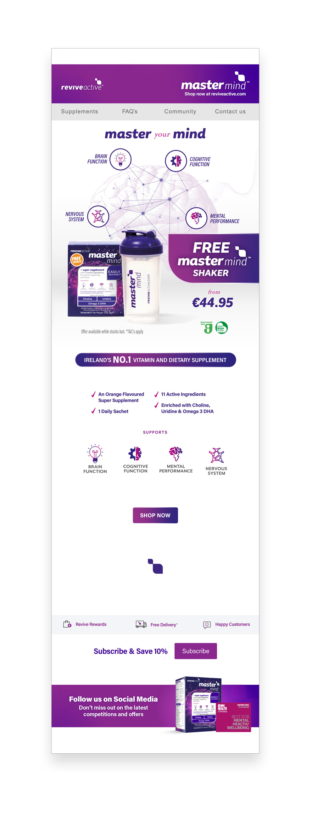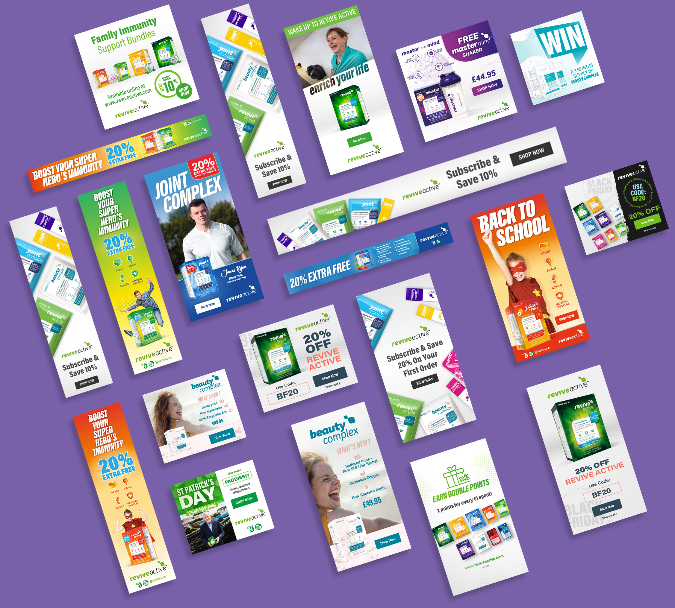 All major Revive Active campaigns started off with a EDM template. The client utilised the extensive and engaged customer database to inform product users of new products, special offers and campaigns and invite-only events.