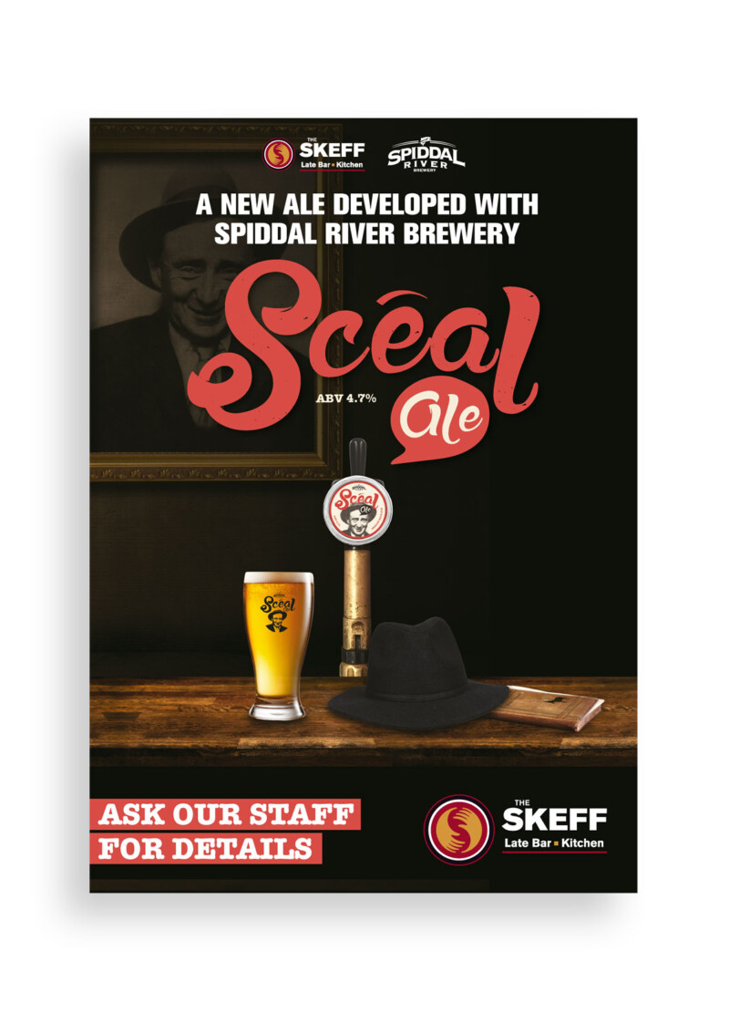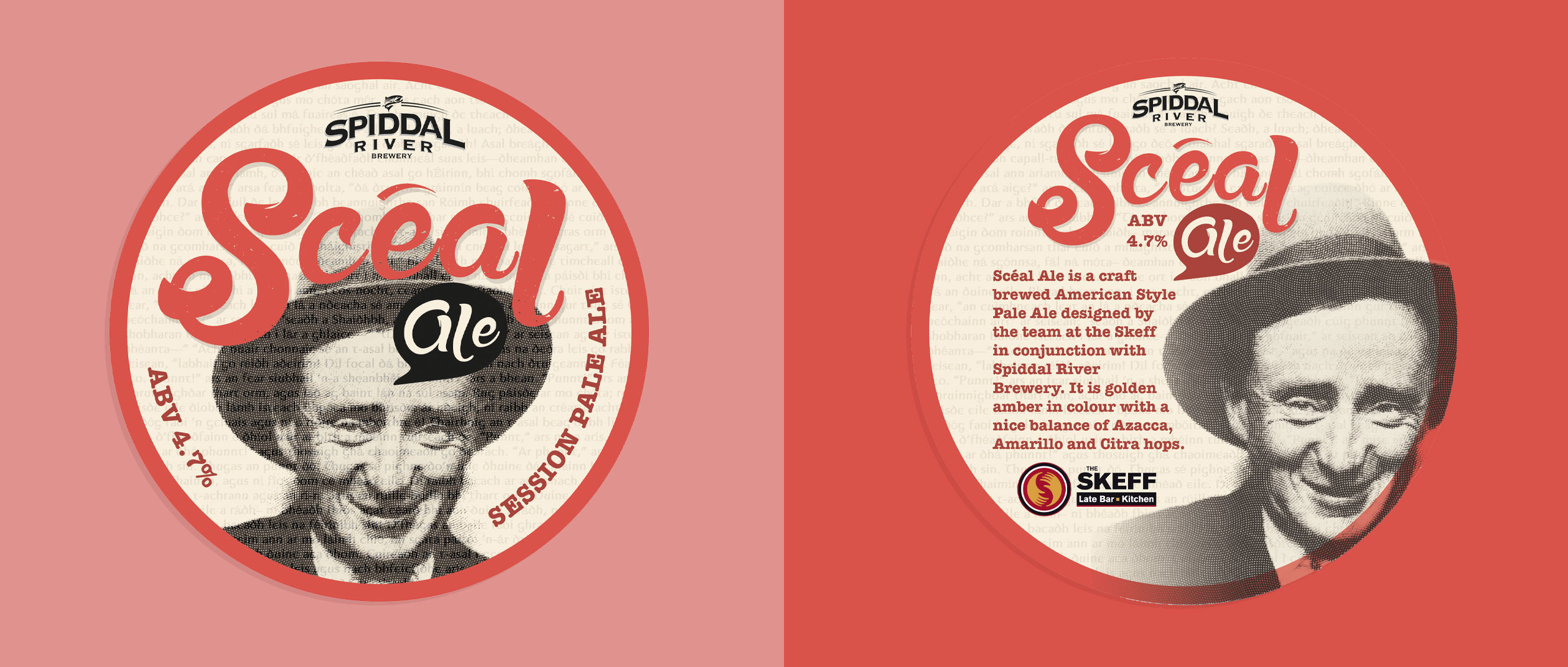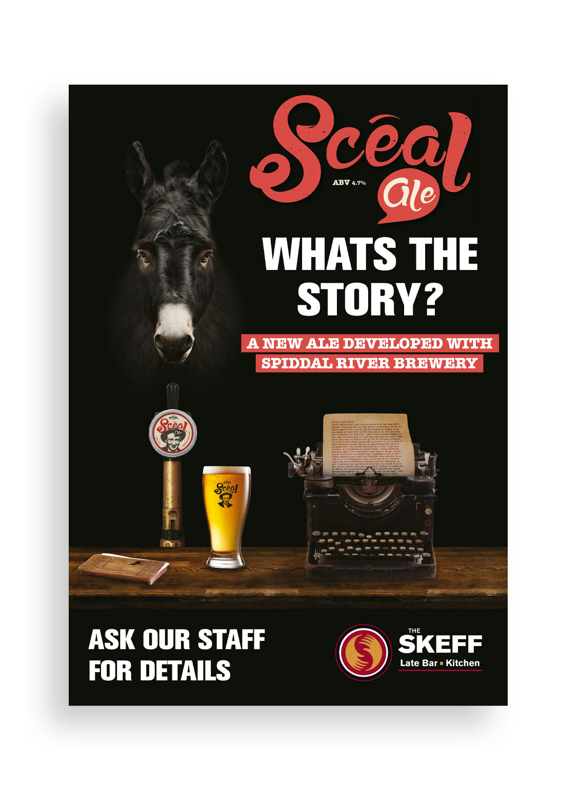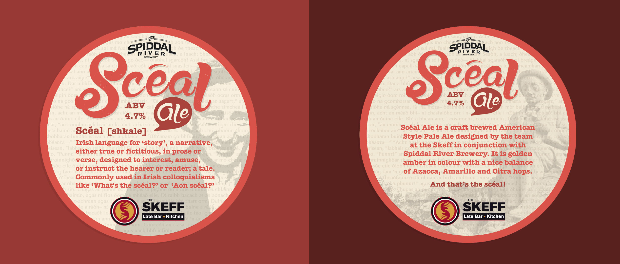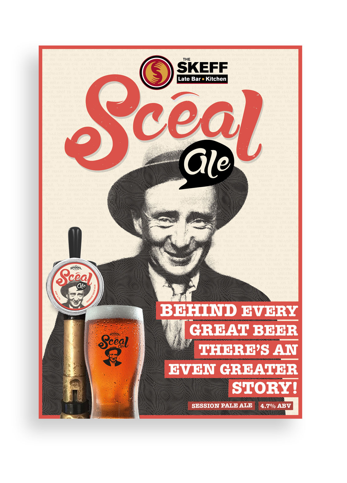 Scéal Ale is a side-project of the mighty Skeff Bar and Restaurant in Galway city, Ireland. This is a bespoke craft ale created with help from the Spiddal River Brewery in Connemara. Packed full of flavour and sold exclusively by the Skeff Bar it required an interesting take on the branding to uniquely position it in a busy craft ale market.
