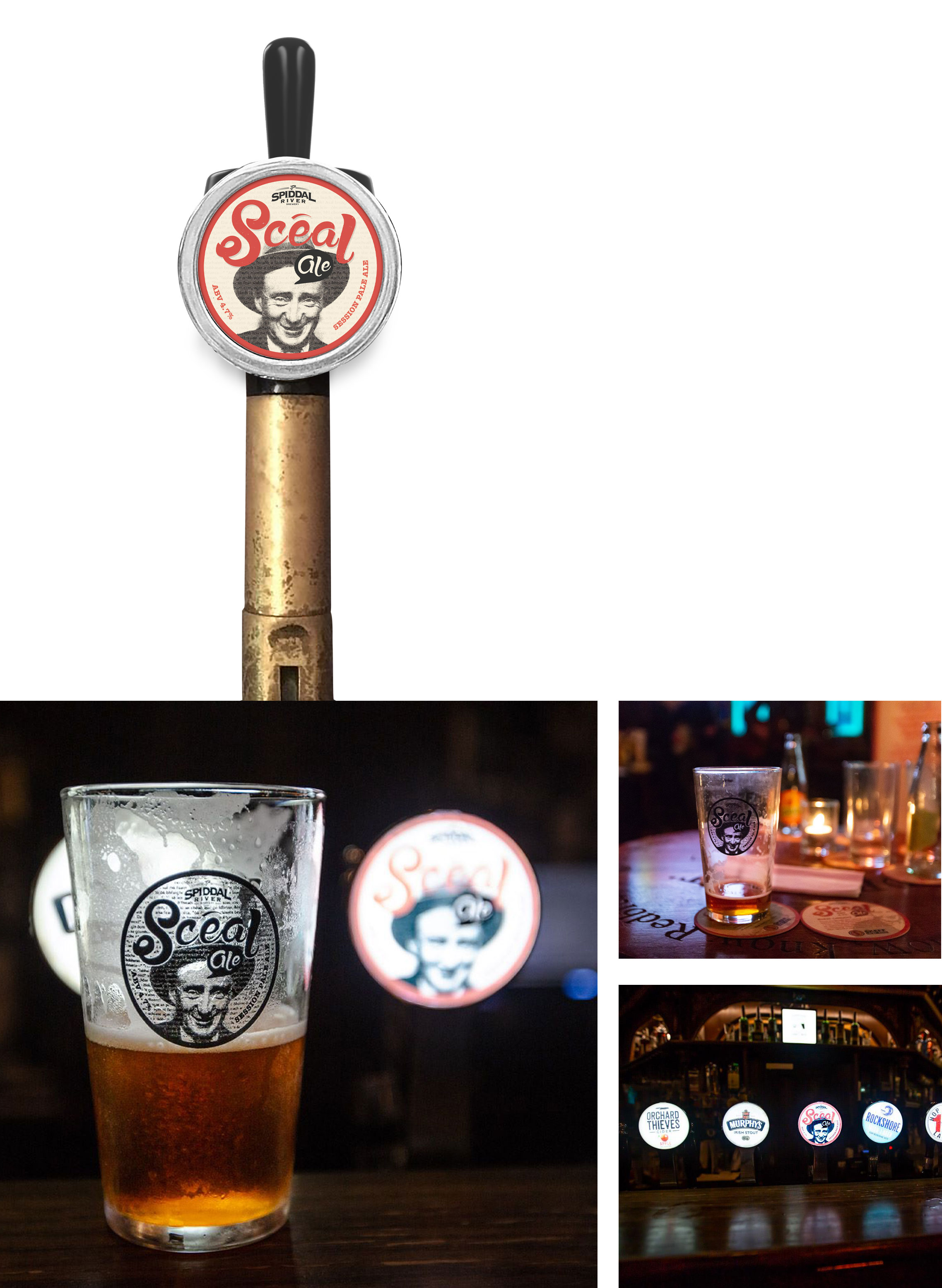 Scéal Ale was a huge success on launch and continues to be sold to this day. The brand was used as a hook sponsor to hang Irish language events in the venue.  Using a Galway city poet hero and iconic presence I created a new distinct voice and quirky, fun brand with the idea of Irish tall tales at the heart of the delivery.
